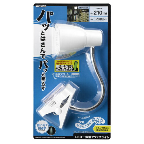 ■乾電池タイプなので面倒な配線も必要ありません■シンプルなフォルムで周りの雰囲気を崩さずに使用できます■ACアダプター(別売/弊社型番ACM1000)使用で、長時間使用できますスタンドタイプ:クリップ型調光機能:-調光範囲:-調色機能:-光源:3WLED(交換不可)転倒OFF機能:-周波数:-Hz定格消費電力:約3W定格光束:110lm固有エネルギー消費効率:-lm/W平均演色評価数:Ra-寸法:幅 86x高さ 400x奥行 120mm質量:約0.28kg付属品:-クリップタイプなので、設置場所を選びません